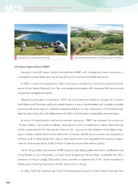 Regarding ecological conservation, YSNP has commissioned studies on groups of Formosan