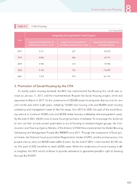 To satisfy public housing demand, the MOI has implemented the Housing Act, which was re-