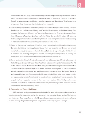 construction quality. It is being considered to clearly state the obligation of illegal structure builders to