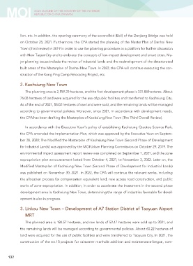 built areas of the Masterplan of Danhai New Town. In 2022, the CPA will continue executing the con-