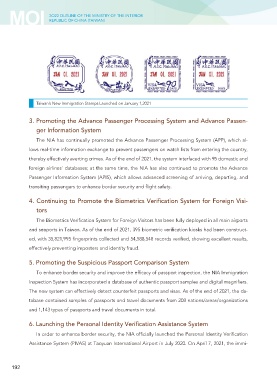 and seaports in Taiwan. As of the end of 2021, 395 biometric verification kiosks had been construct-