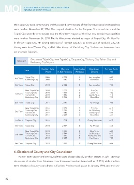 Huang Wei-che of Tainan City, and Mr. Han Kuo-yu of Kaohsiung City. Statistics on these elections
