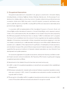 (2) In 2021, a total of 2 occupational associations at national level were assisted in their establishment
