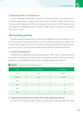 818 districts covering 393,987 hectares have been completely readjusted (See Table 5-7).